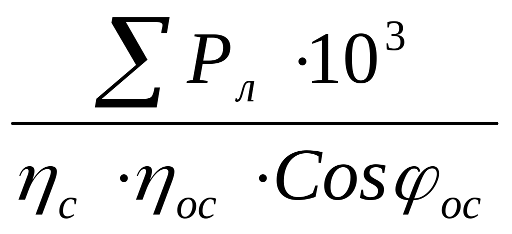 ηс = 0,95÷096 к.п.д. осветительной сети
