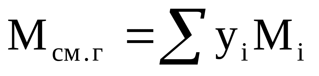 где Мсм.г, Мi – относительные массы смеси газов и отдельных компонентов; μсм.г, μiг – коэффициенты динамической вязкости смеси газов и отдельных компонентов; уi – объемные доли компонентов в смеси;