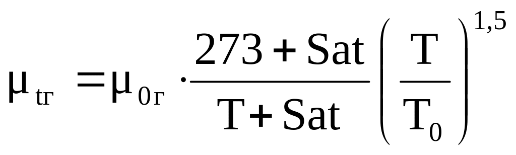 Динамическую вязкость газов и паров при t ≠ 0 рассчитывают по формуле: