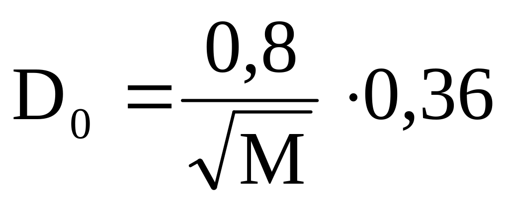 Коэффициент диффузии, который необходим для расчетов количеств выделяющихся из оборудования вредных веществ, можно рассчитать по следующей зависимости (м2/ч):