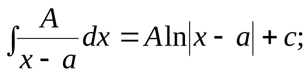 Рассмотрим интегралы от простейших дробей. Имеем: