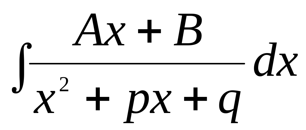 Во всех четырех случаях предполагается, что А, В, р, q- действительные числа. Перечисленные дроби будем соответственно называть простейшими дробями 1, 2, 3, 4-го типов.