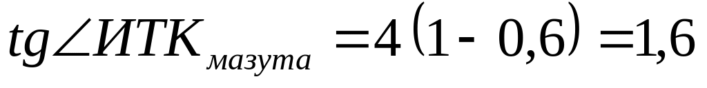 Пример 3. Найти угол наклона линии ИТК для мазута и температуру отгона 50% его, если tg ИTKнефти = 4 и температура, соответствующая отгону 60% светлых, равна 3100C.
