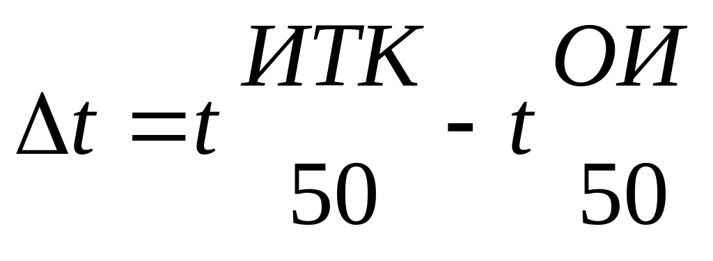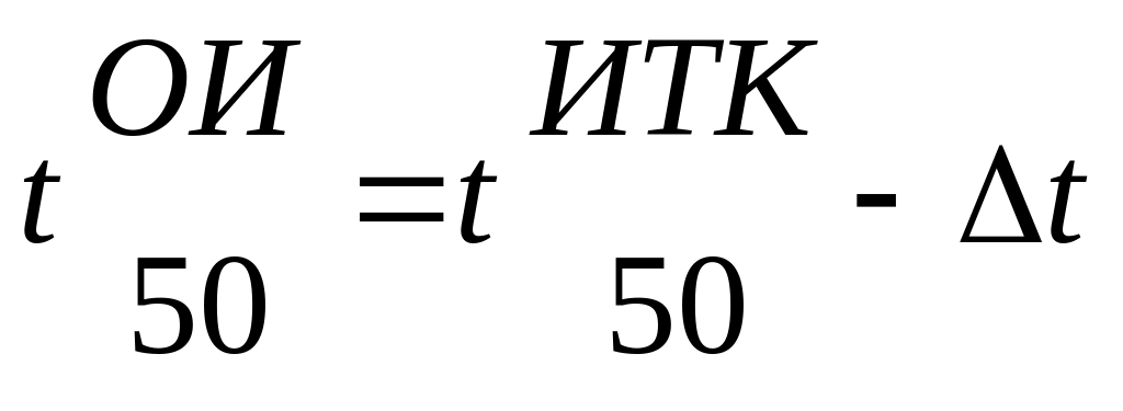 Зная температуру, отвечающую 50%-ному отгону по ИТК (50%-ная точка по ИТК), можно вычислить температуры начала ,1 конца ОИ (в 0C)