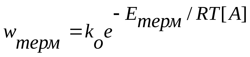 При проведении этой реакции на твердом катализаторе максимальное значение предэкспоненциального множителя не может превышать удельного числа соударений молекул с поверхностью, имеющего при обычных условиях порядок 105 см-2с-1, максимальная скорость wкат (в см-3мольс-1) при атмосферном давлении не может быть больше: