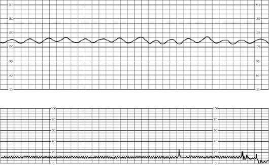 Рис. 32.22. Синусоидальный ритм сердечных сокращений плода при отечной форме гемолитической болезни