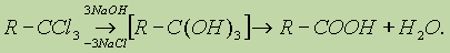 2. Другой общий способ — гидролиз галогензамещенных углеводородов, содержащих три атома галогена у одного атома углерода: