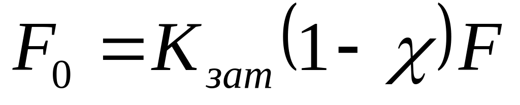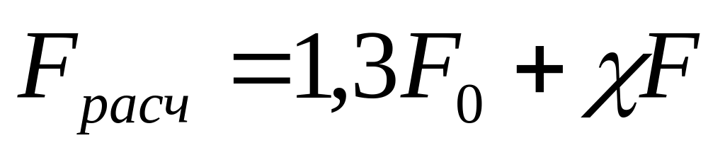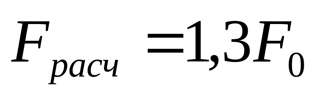 Расчет винтов, работающих на совместное действие растяжения и скручивания, можно вести на одно растяжение, принимая при этом не силу затяжки F0, а увеличинную с учетом скручивания силу Fрасч.