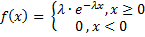 Случайная величина непрерывного типа распределена по показательному закону, если её плотность распределения вероятностей: