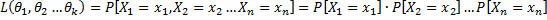 то функция правдоподобия равна вероятности того, что элементы выборки (независимые случайные величины Х1, Х2… Хn) примут конкретные значения Х1, Х2… Хn.