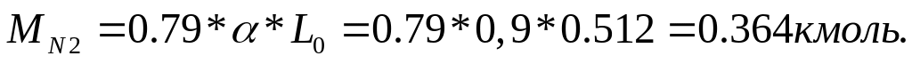 М1 = 1/Т + * L0 = 1/115 + 0,9 * 0.512 = 0.469 кмоль/кгТ.