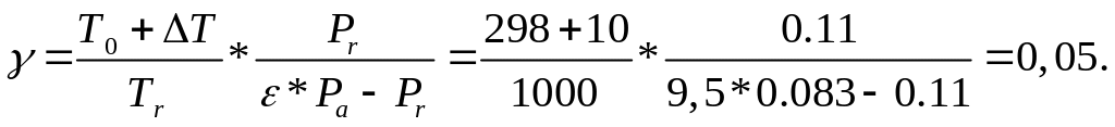 = 1.00…1.03 – отношение теплоёмкости остаточных газов к теплоёмкости свежего заряда.