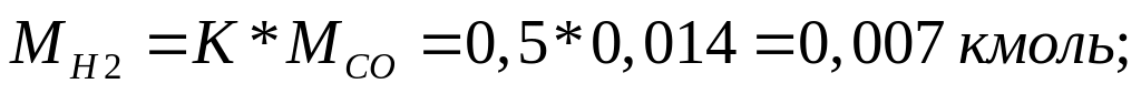Приняв К = МН2/МСО = 0.5 получим: