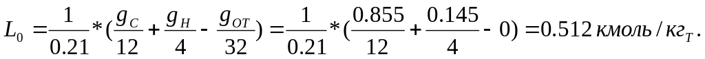 Количество воздуха, теоретически необходимое для полного сгорания топлива:
