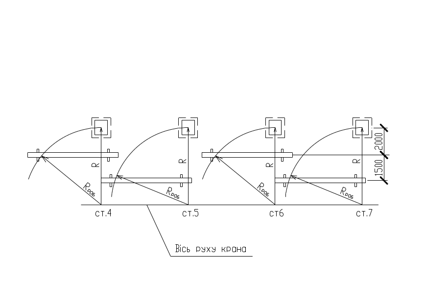 Рисунок 3 –Схема проходки та стоянки монтажного крана при монтажі колон