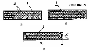 а — нарезная (тип А) с обкладками; б — послойно завернутая (тип Б) с обкладками (без обкладок); в — спирально завернутая
