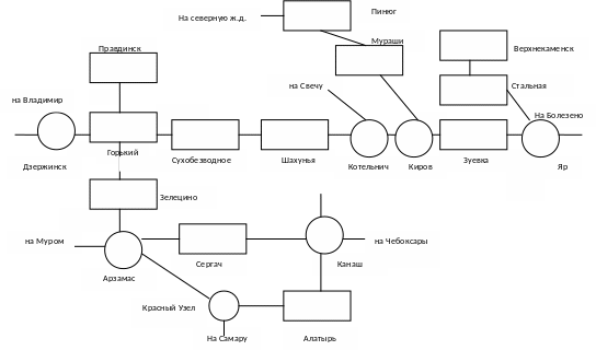Рис.1. Схема Горьковской железной дороги
