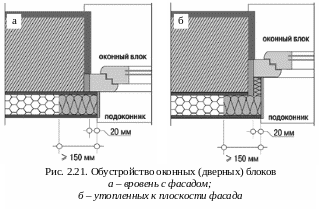 Если оконные (дверные) блоки утоплены по отношению к плоскости фасада (рис. 2.21 б), то на откосы также