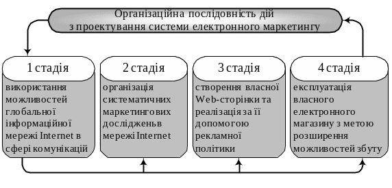 Рисунок 3.1 - Стадії проектування системи електронного маркетингу