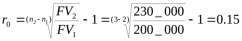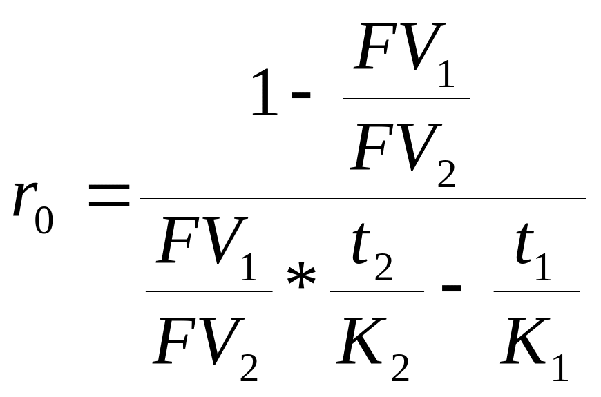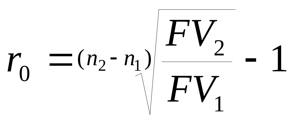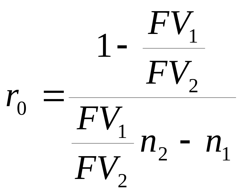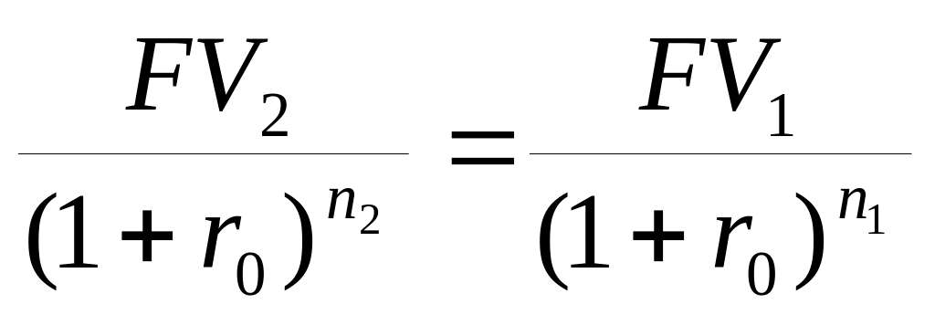 Нетрудно заметить, что с ростом процентной ставки величина PV уменьшается. Таким образом, при некотором ставки будет выполнено равенство PV1=PV2, т.е. современные стоимости платежей совпадут. Платежи, которые оказываются равными при приведении к одному моменту времени, называются эквивалентными, а ставка сравнения в этом случае (r0) называется критической (или барьерной).
