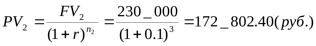 2. Приводим все платежи в потоке к моменту первой инвестиции по формуле (11.1). Для первого члена потока: