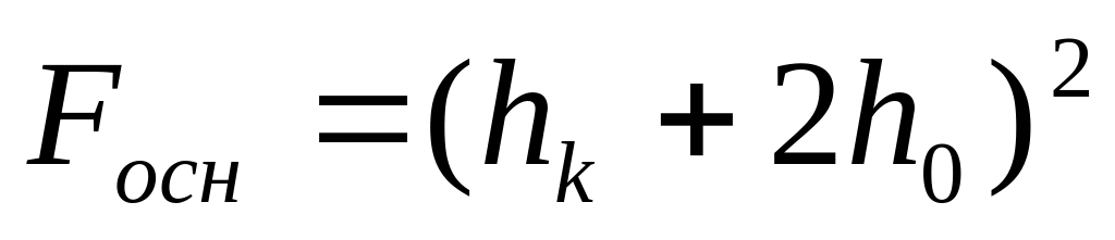 площа основи піраміди продавлювання при квадратних в плані колоні і фундаменті; bcp – cереднє арифметичне між периметрами верхньої і нижньої основи піраміди продавлювання в межах корисної висоти фундаменту h0, рівне: