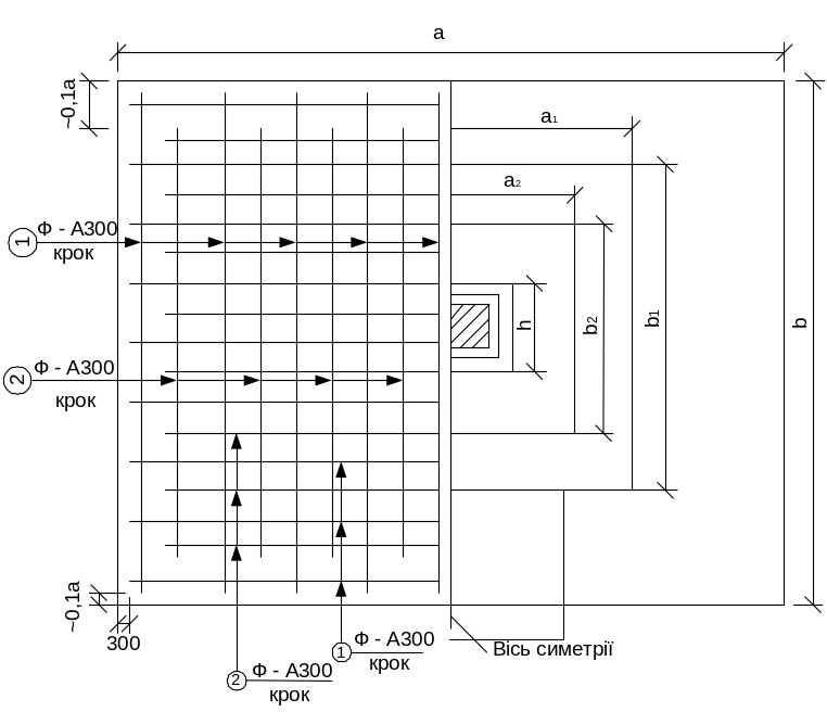 Приймаємо розмір підошви фундаменту кратним 300мм