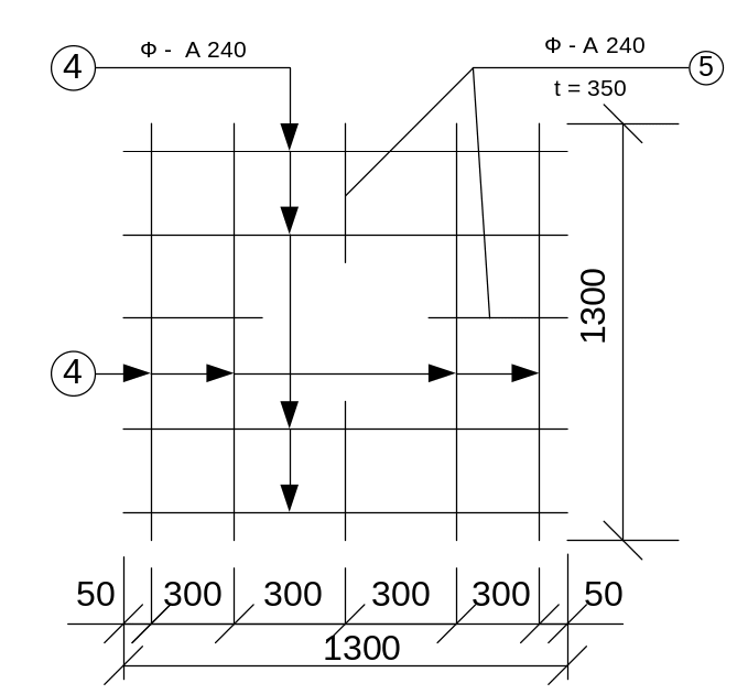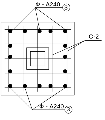 приймаємо нестандартну сітку із арматури А діаметром 14мм по перерізу 3 – 3 з вічками 17х17 см, Fa=…см2 в одному напрямку (див. сітку