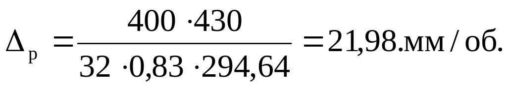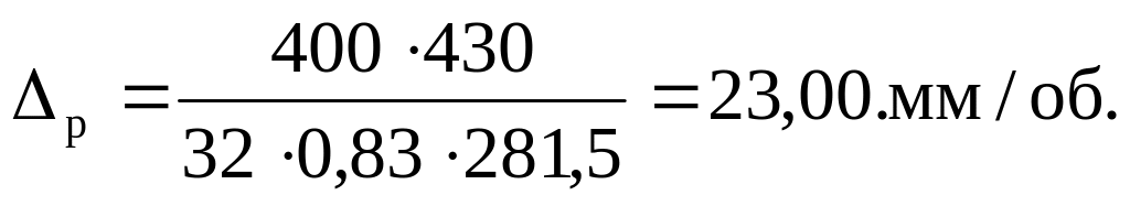 где i - фактическая посылка за один оборот вала рамы, т.е. за один полный (рабочий и холостой) ход пильной рамки, мм;