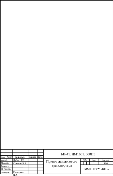 - Частота обертання тихохідного вала клинопасової передачі–990 1/хв;