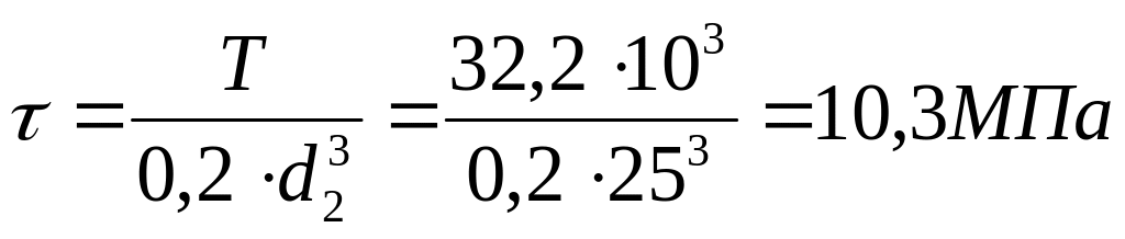 Так як небезпечний переріз ослаблений шпонковим пазом, допустиме напруження примаємо на 35% меншим, ніж табличне значення.