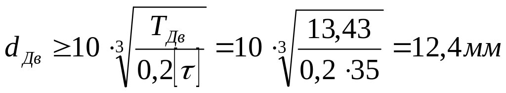 Діаметри вихідних кінців валів (мм) для перерізів, у яких діє тільки крутний момент, визначаємо за формулою