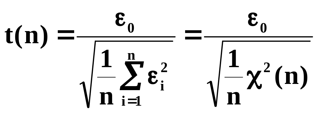 Распределение Стьюдента (t –распределение с n- степенями свободы). Пусть ε0, ε1,…… εn независимые случайные переменные.