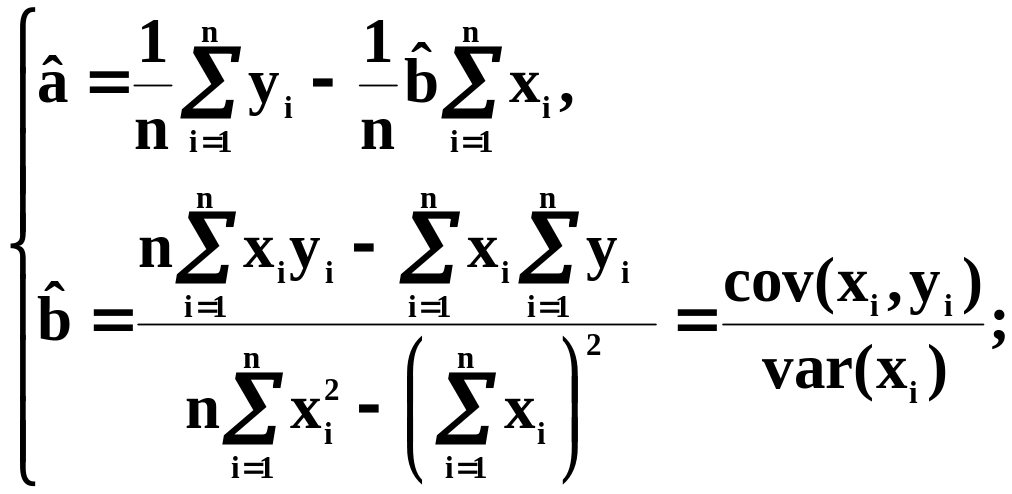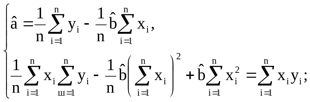 Из этой системы находится оценочное значение коэффициентов а и в, т.е. и :