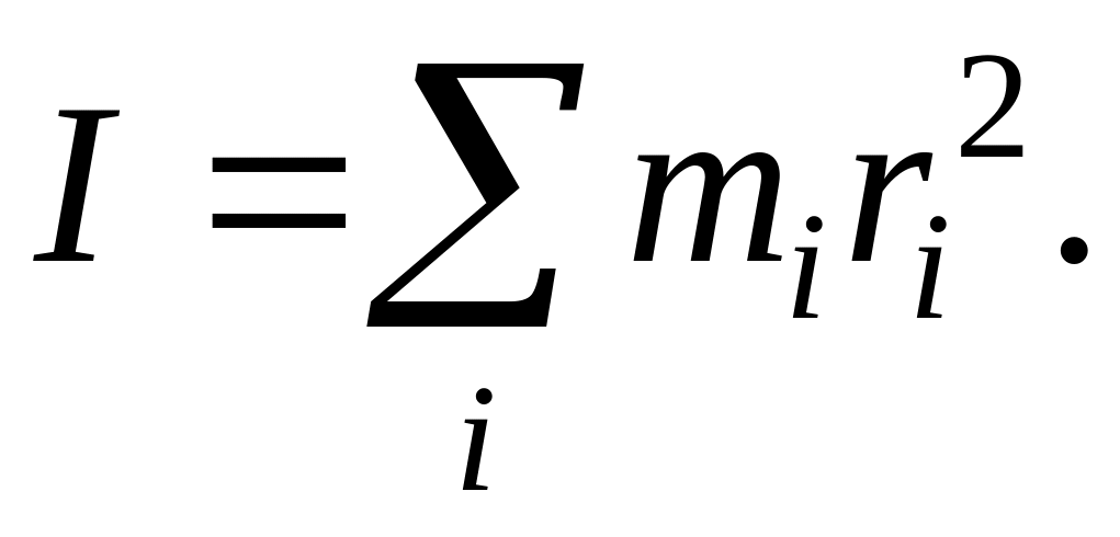Величина I, равная сумме произведений масс материальных точек на квадраты расстояний их до оси вращения, называется моментом инерции системы относительно этой оси. Уравнение (4.7) показывает, что при вращении системы момент ее импульса относительно оси вращения равен произведению момента инерции относительно той же оси на угловую скорость.