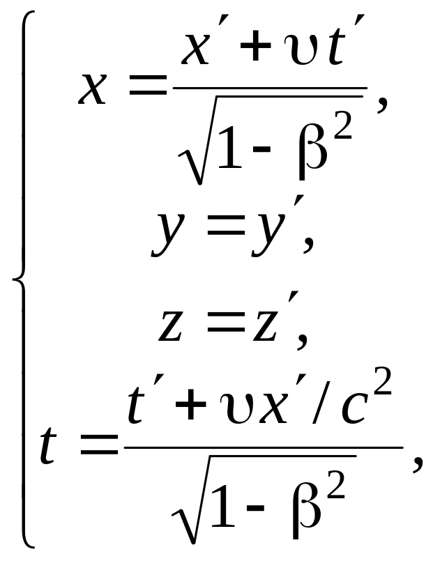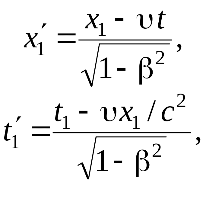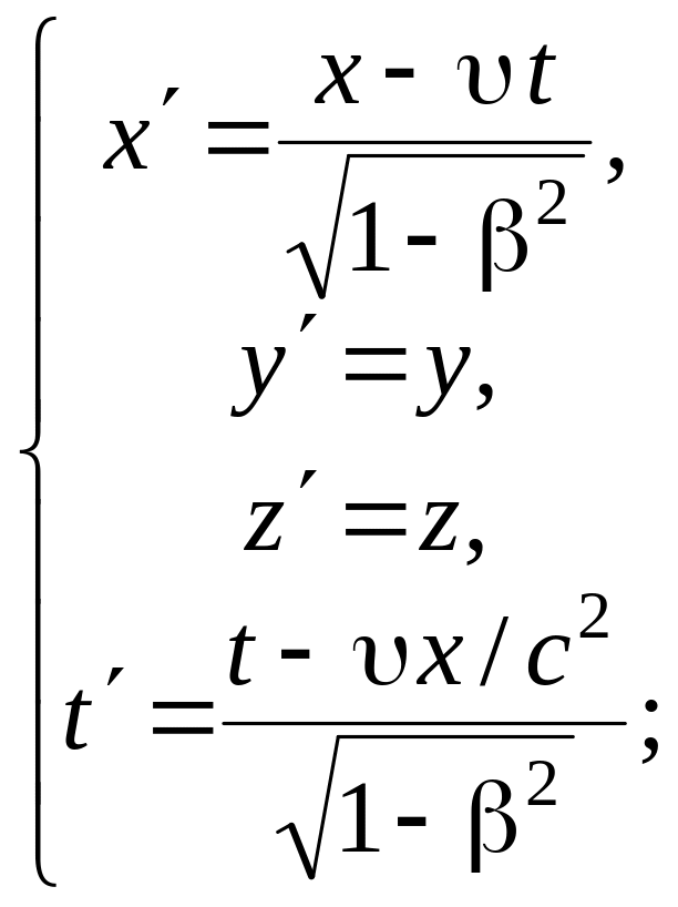 3. В закон преобразования координат входит время, а в закон преобразования времени – пространственные координаты (устанавливается взаимосвязь пространства и времени).