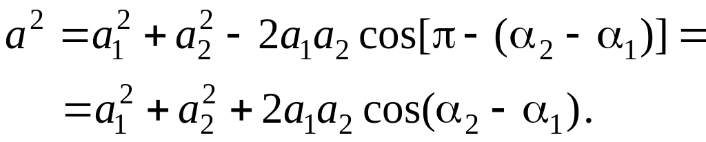 Здесь мы воспользовались теоремой косинусов. Далее из рисунка находим