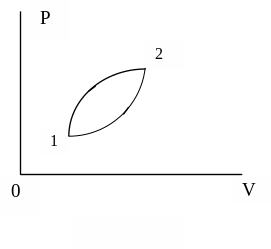 Процесс, при котором система после ряда изменений возвращается в исходное состояние, называется круговым процессом или циклом. Обратимый цикл изображается на координатной плоскости замкнутой кривой (1–2–1).