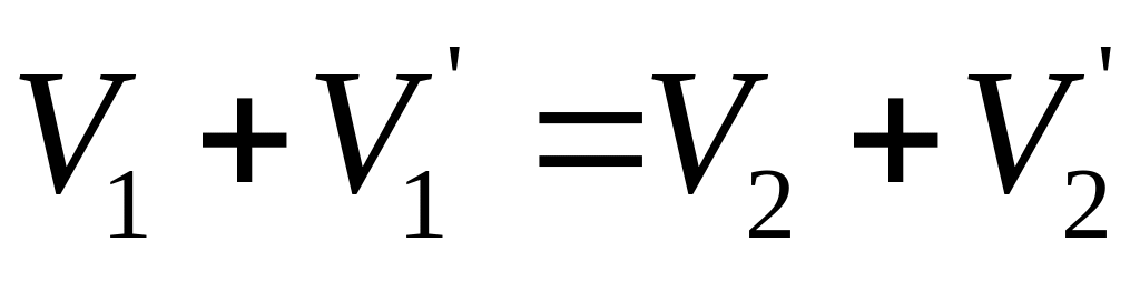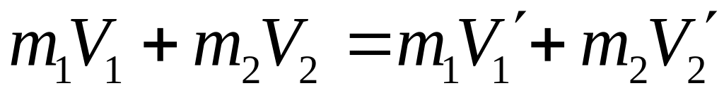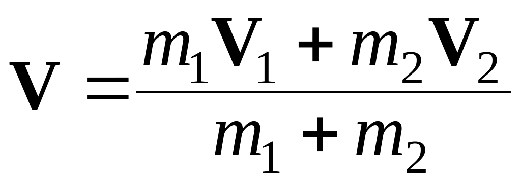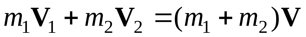 (m1 и m2 – массы шаров, V1 и V2 – скорости шаров до удара, V – скорость шаров после удара). Тогда