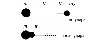 Абсолютно неупругий удар. Столкновение двух тел, в результате которого тела объединяются, двигаясь дальше как единое тело.