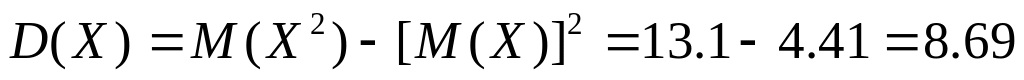 Розглянемо приклад знаходження дисперсії випадкової величини. Знайдемо математичне очікування й зведемо його квадрат (рис. 2.2). Результат обчислень представлений осередку B13: