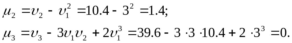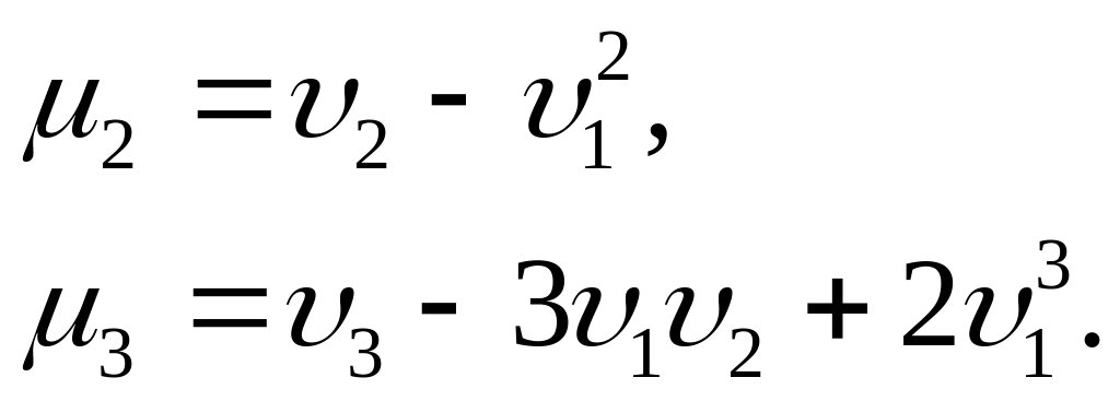 Для обчислення центральних моментів другого й третього порядків зручно скористатися формулами, що виражають центральні моменти через початкові: