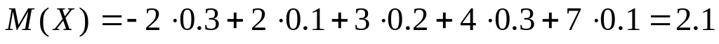 Рішення. Математичне очікування дорівнює сумі добутків всіх можливих значень на їхній імовірності: