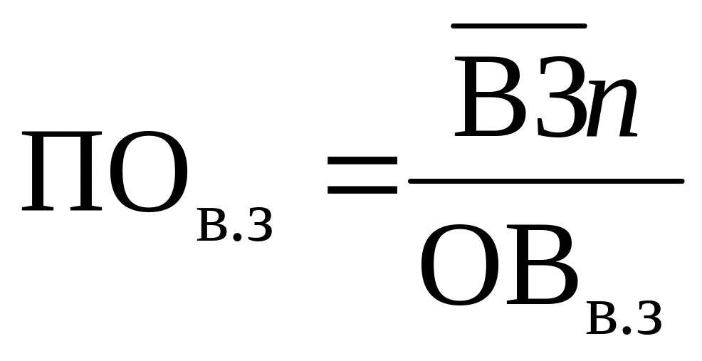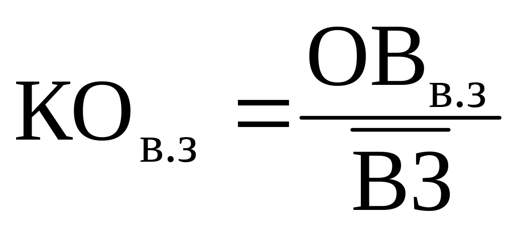 Коефіцієнт оборотності виробничих запасів (КОв.з), що визначає кількість оборотів, які здійснюють матеріали, сировина, напівфабрикати впродовж досліджуваного періоду, обчислюється за формулою: