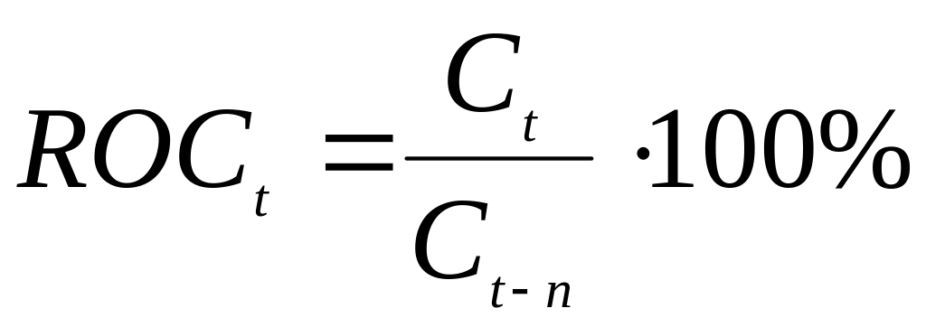 Индикатор рассчитывается как отношение конечной цены текущего дня к цене n дней тому назад, выраженное в процентах.