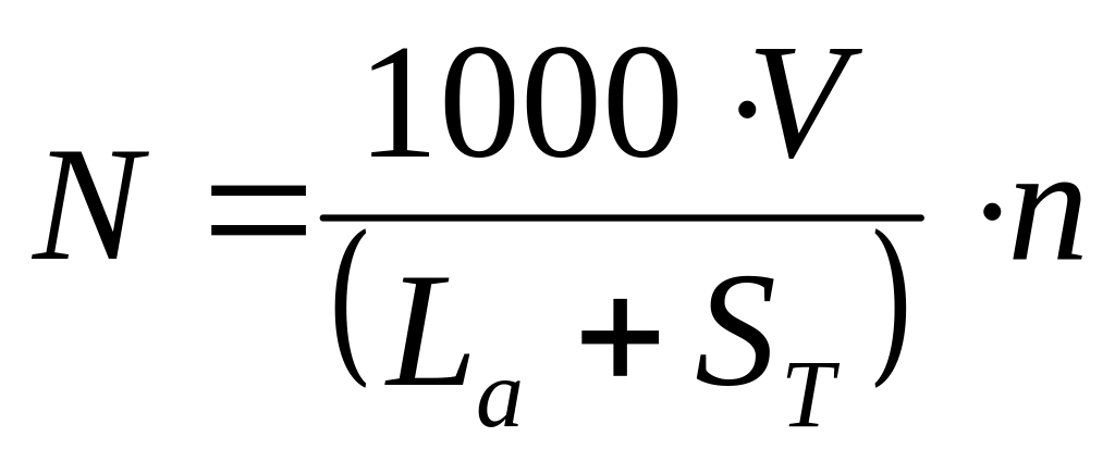 Пропускна спроможність дороги N (авт/год) розраховується за формулою