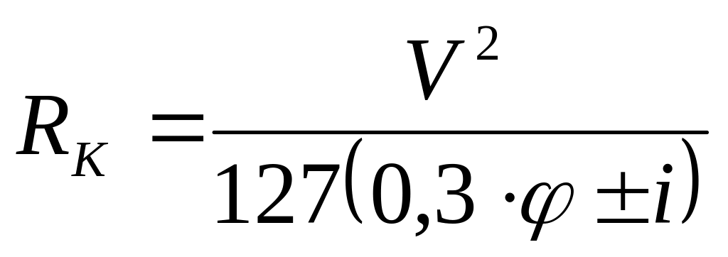 Радіус кривої RK при русі автомобіля по внутрішній чи зовнішній смугам руху дороги визначається за формулою