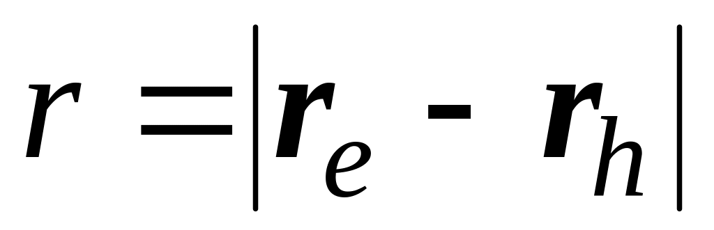 где – энергетическая щель между дном зоны проводимости и потолком валентной зоны. Вводя взаимодействие между электроном и дыркой в кулоновском виде