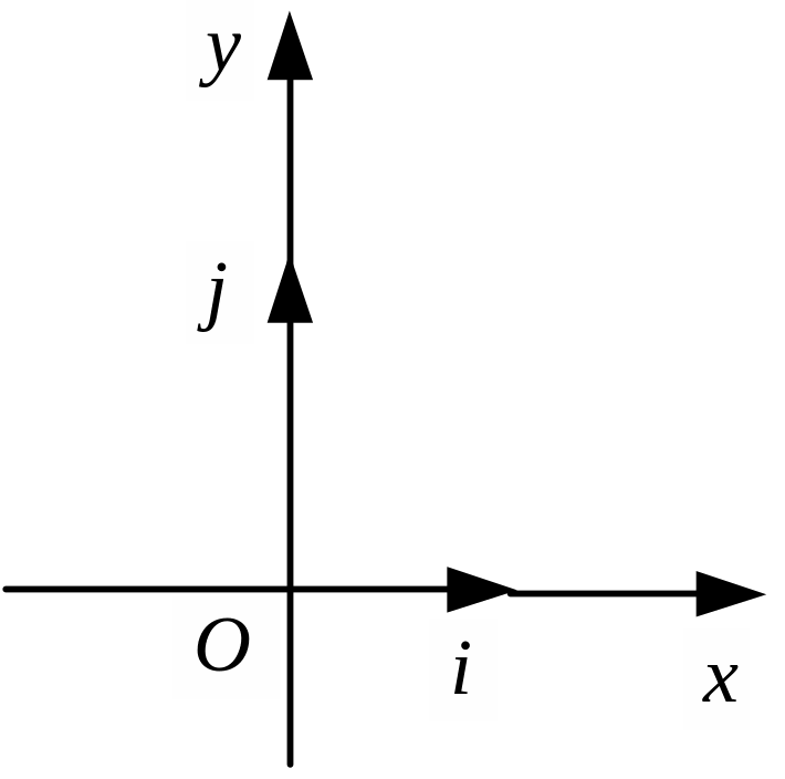 Если векторы рассматриваются на плоскости, то ПДСК состоит из двух перпендикулярных осей Ох, Оу с направляющими ортами i, j(i = {1; 0}, j = {0; 1} ).