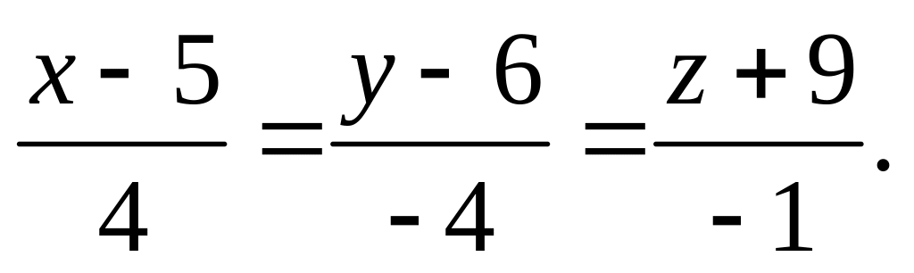 5(х +3) + 4 (у + 2) + 4 (z – 9) = 0, 5 x + 4у + 4z – 13 = 0 – общее урав-нение плоскости.